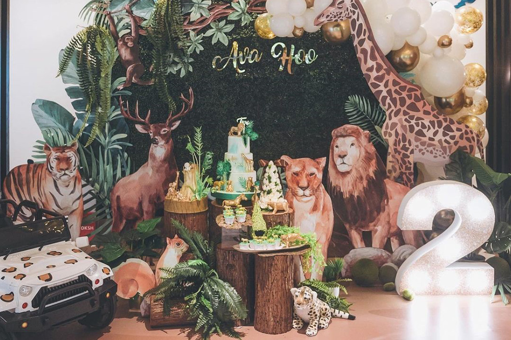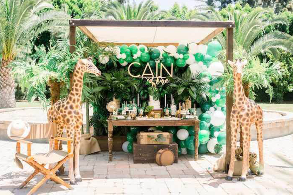 Here's another crowd favourite, the Safari theme! If you're planning for an authentic safari vibe, you might want to take this outdoors to help guests feel like they had arrived at a camp in Africa. Kids go crazy with all the wild animals like elephants, giraffes and lions. So treat your little explorer to an adventure of a lifetime with a safari animal-packed party!